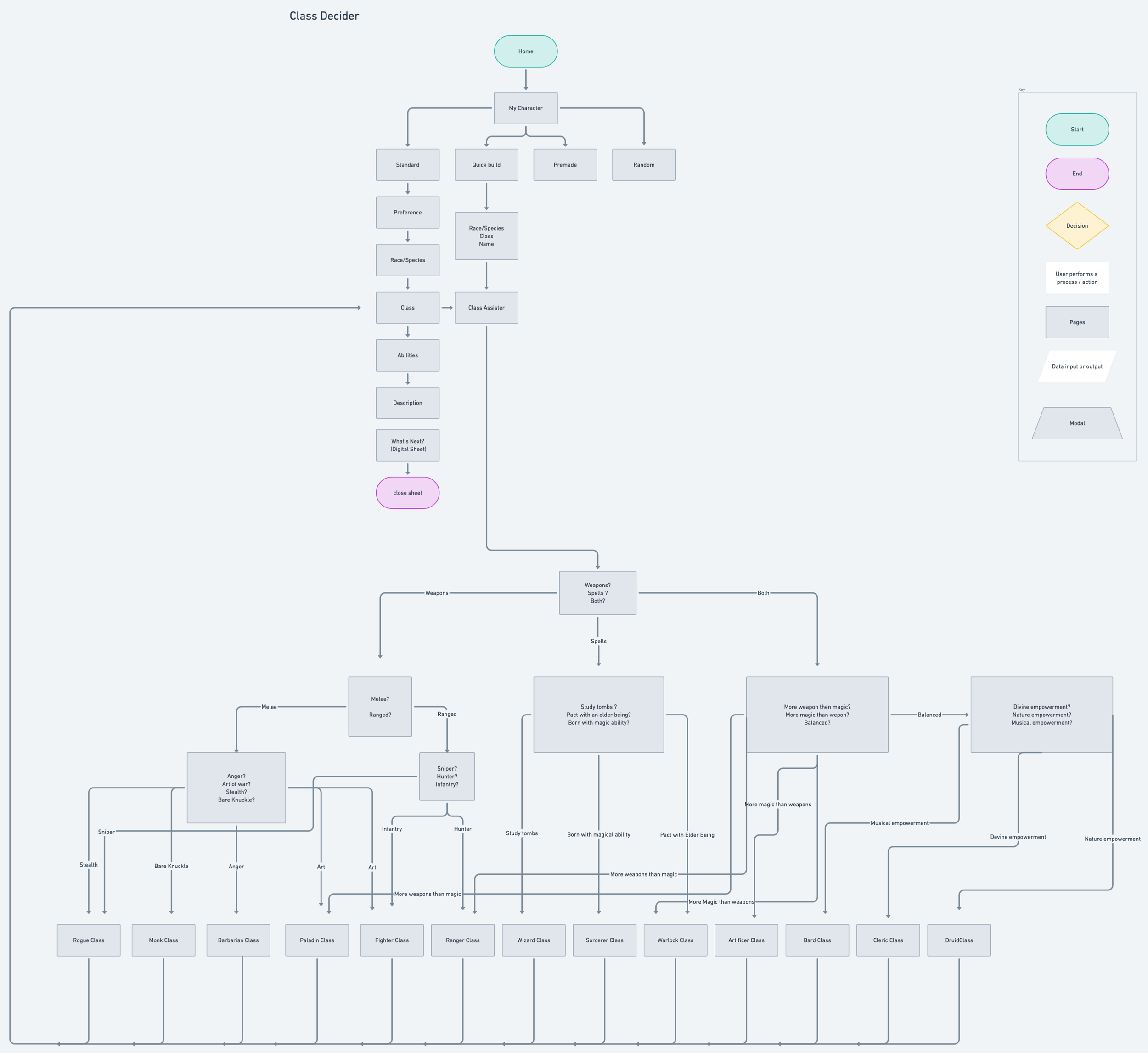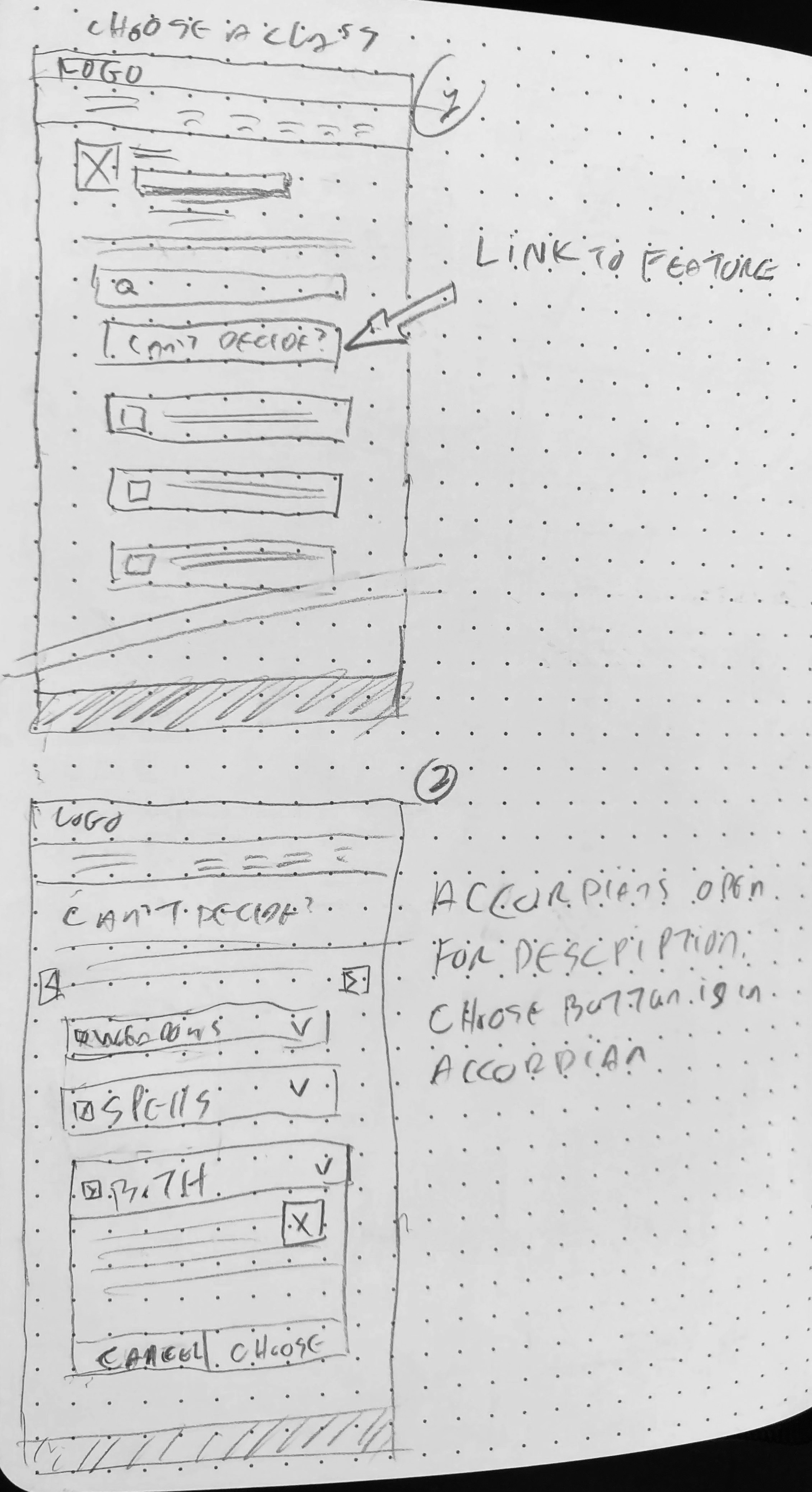 User flow for Class Decider was a………...busy one! With the amount of classes available the right questions needed to be asked or the user is quickly heading down the wrong path.