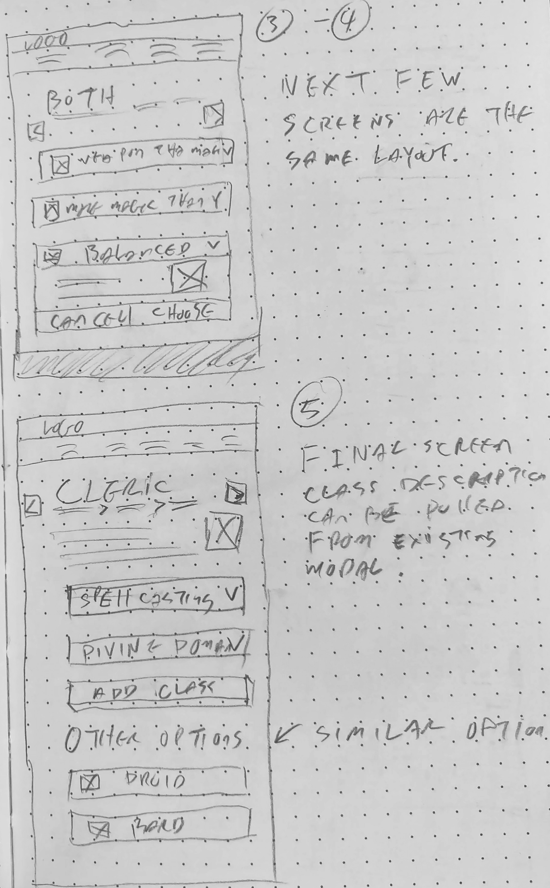 Knowing what step you are in the process is in important. Originally I had it in the header of the page. It wasn’t near or similar in design to the overall character building menu already on the site.