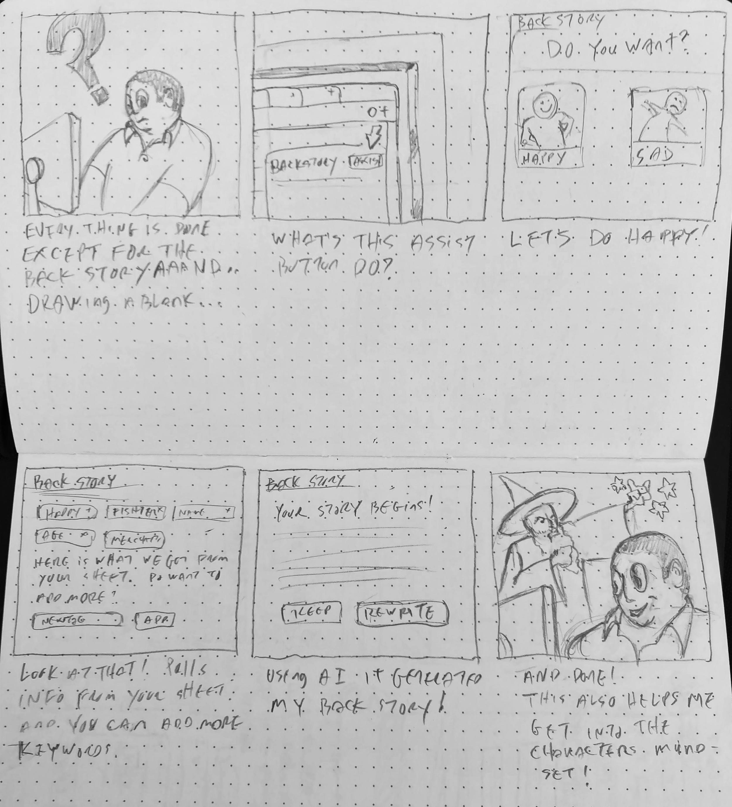 The goal is for novices using a persona driven approach instead of rules. Assisting with creativity to give their characters dimension and playability.