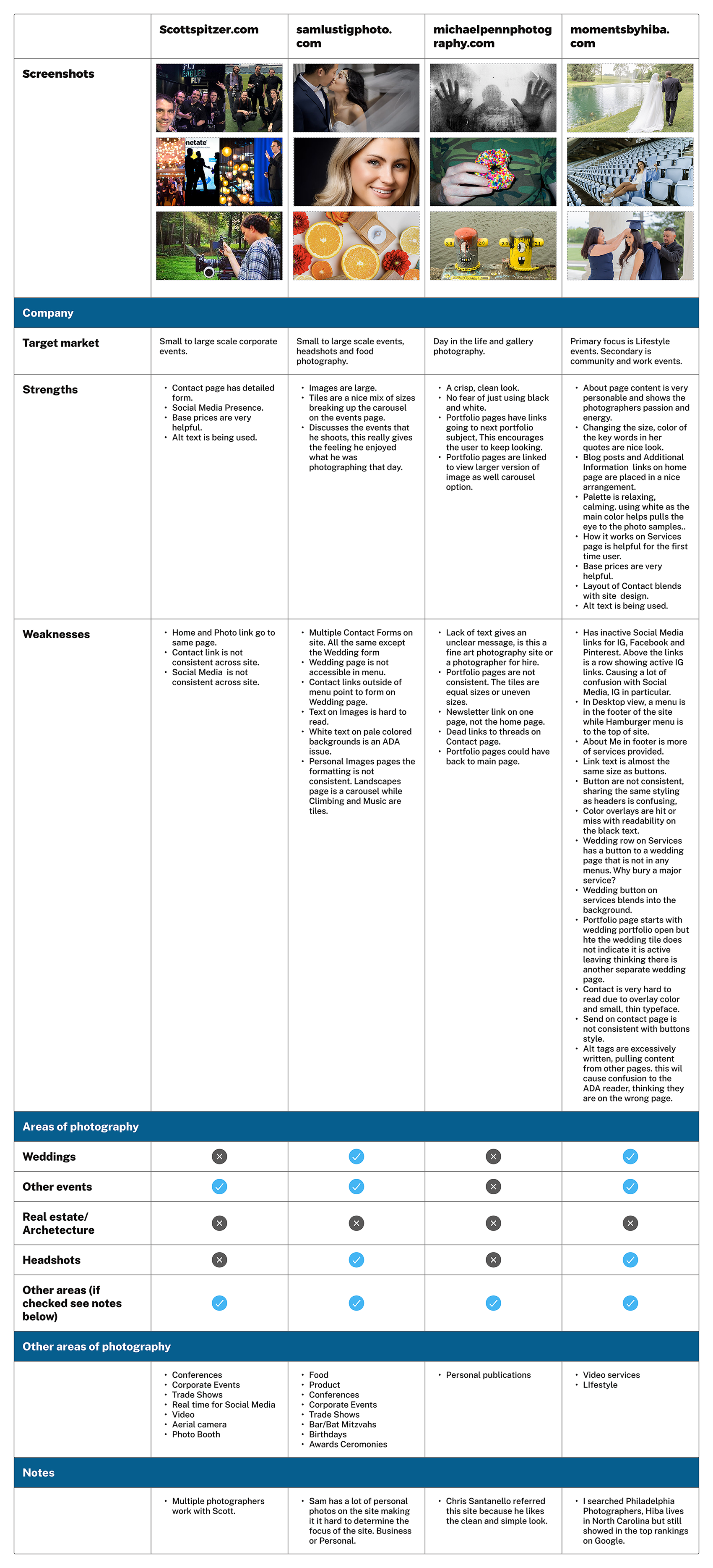 Communication was a big factor. Example: Most had to ask the photographer when the photos would be ready or if a downpayment was needed.