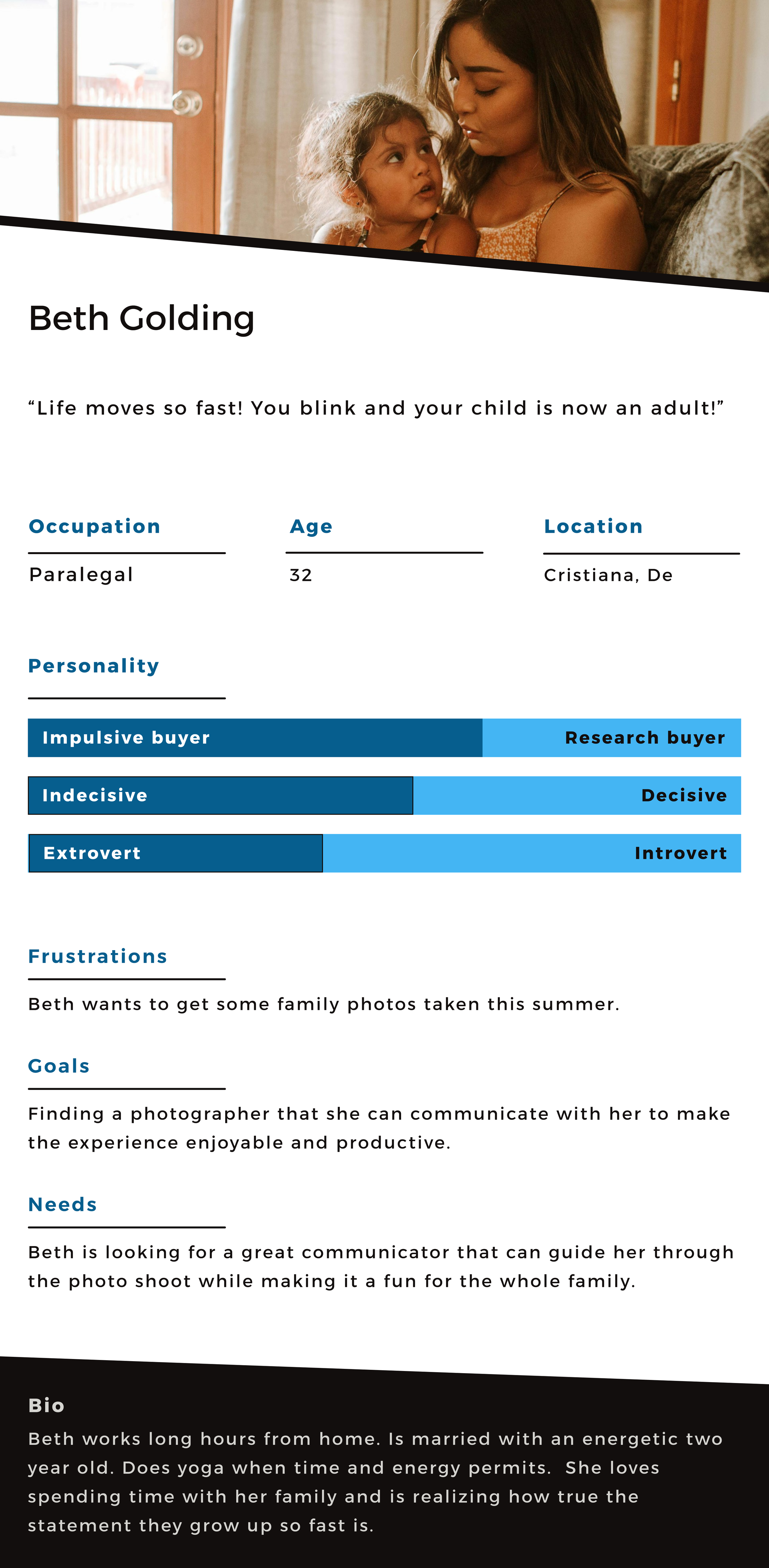 I'd like to explore ways to help clients to be able to find a photographer to match their personality because they want to make the photoshoot productive and enjoyable.