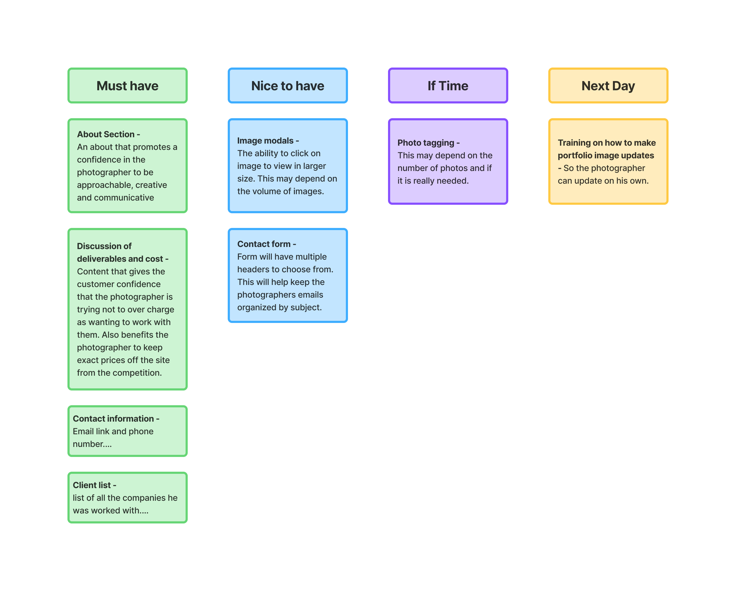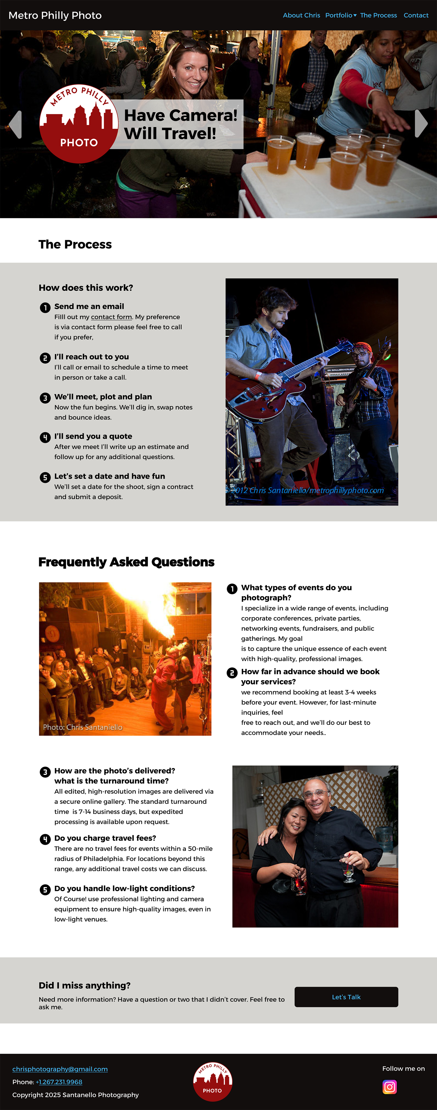 I prioritized on what was needed for getting the site up and ready to start promoting Chris as a photographer for hire.