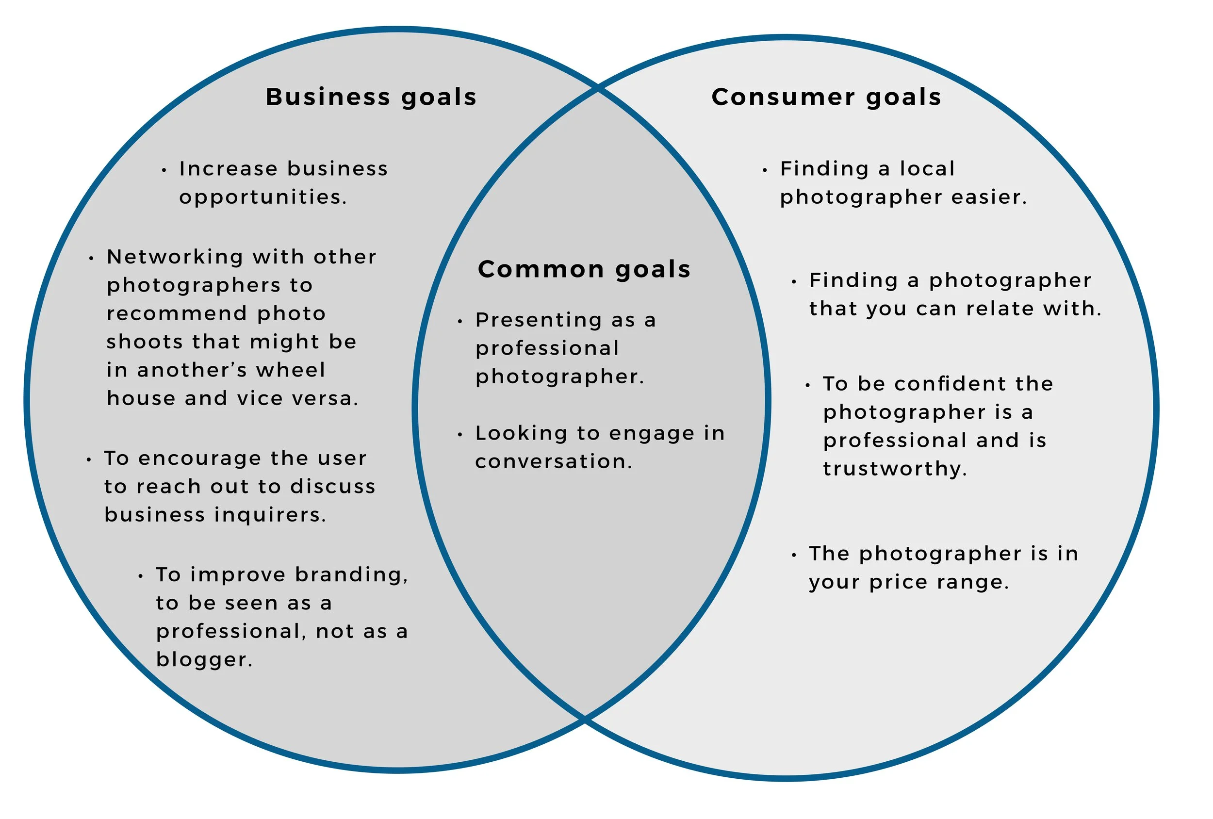 Working through the discoveries and comparing them to Chris’s goals I developed a Venn diagram. The Venn really helped me target an approach to the overall site.