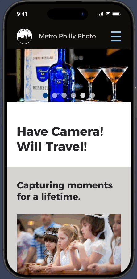 My first round of design ideas took away from the photos…the purpose of the site is making the photos central.