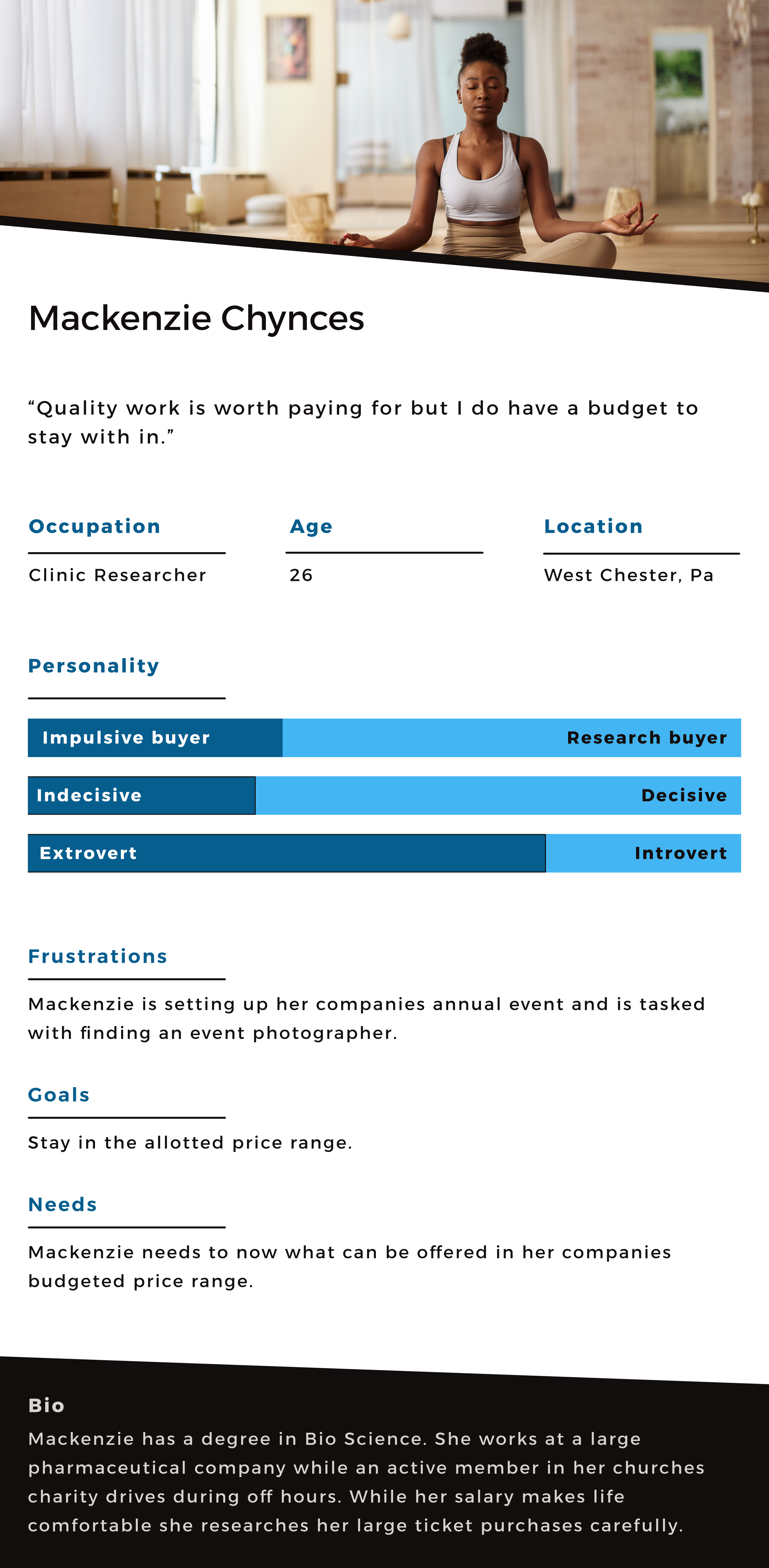 Chris wants to expand his client base. He wants his photography and branding to be presented in an environment that reflects his work ethic and highlights his photography.